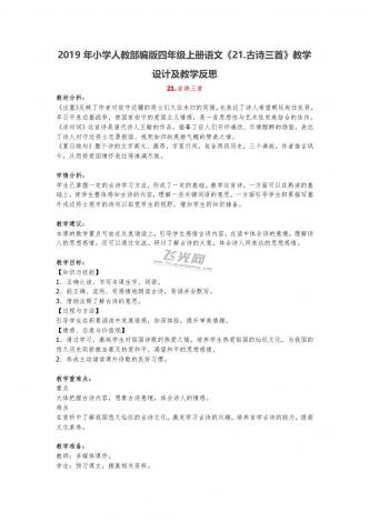 2019年小学人教部编版四年级上册语文《21.古诗三首》教学设计及教学反思