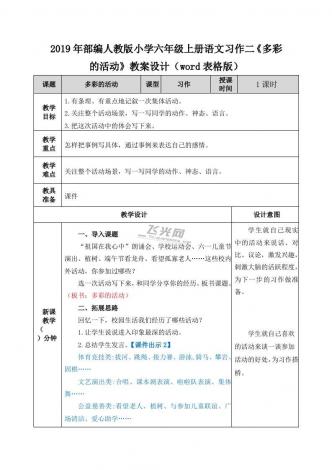 2019年部编人教版小学六年级上册语文习作二《多彩的活动》教案设计(word表格版)