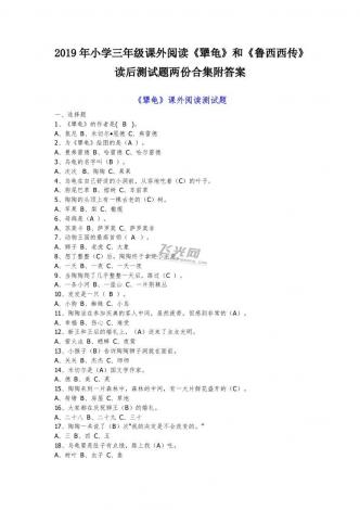 2019年小学三年级课外阅读《犟龟》和《鲁西西传》读后测试题两份合集附答案