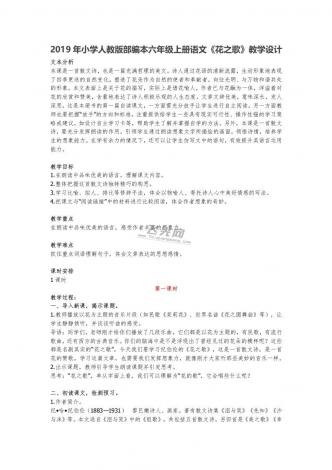 2019年小学人教版部编本六年级上册语文《花之歌》教学设计