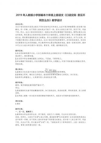 2019年人教版小学部编本六年级上册语文《口语交际 意见不同怎办》教学设计