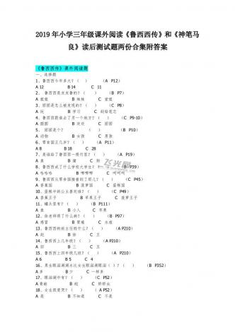 2019年小学三年级课外阅读《鲁西西传》和《神笔马良》读后测试题两份合集附答案