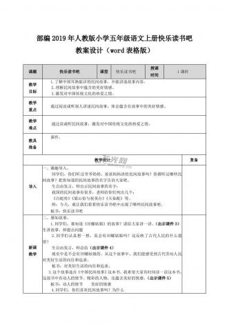 部编2019年人教版小学五年级语文上册快乐读书吧教案设计(word表格版)
