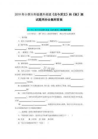 2019年小学六年级课外阅读《古今贤文》和《秋》测试题两份合集附答案