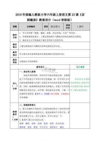 2019年部编人教版小学六年级上册语文第23课《京剧趣谈》教案设计(word表格版)