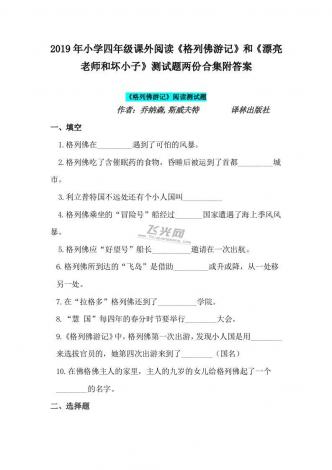 2019年小学四年级课外阅读《格列佛游记》和《漂亮老师和坏小子》测试题两份合集附答案