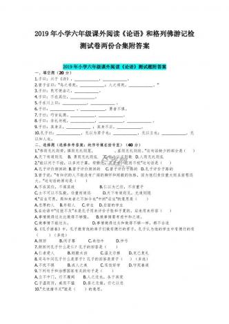 2019年小学六年级课外阅读《论语》和格列佛游记检测试卷两份合集附答案