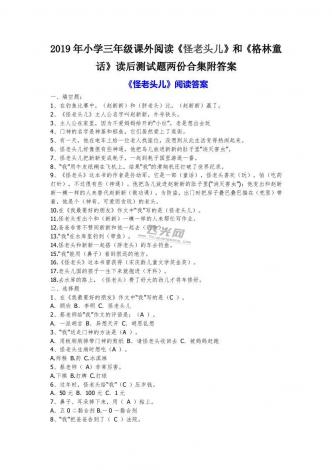 2019年小学三年级课外阅读《怪老头儿》和《格林童话》读后测试题两份合集附答案