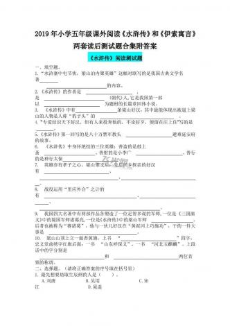 2019年小学五年级课外阅读《水浒传》和《伊索寓言》两套读后测试题合集附答案