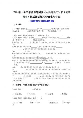 2019年小学三年级课外阅读《木偶奇遇记》和《爱的教育》课后测试题两份合集附答案