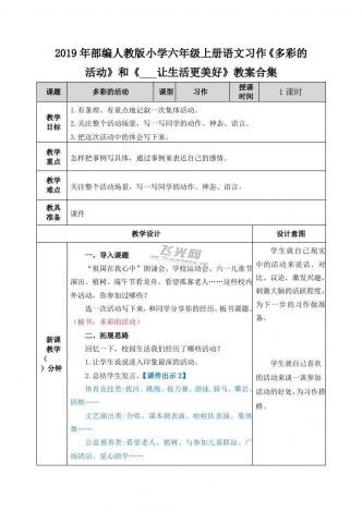 2019年部编人教版小学六年级上册语文习作《多彩的活动》和《 让生活更美好》教案合集