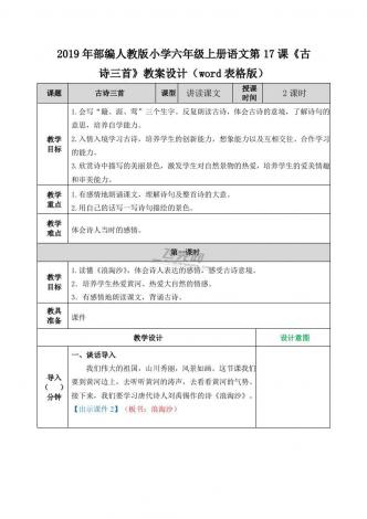 2019年部编人教版小学六年级上册语文第17课《古诗三首》教案设计(word表格版)