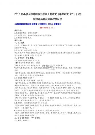 2019年小学人教部编版五年级上册语文《牛郎织女(二)》教案设计两套合集及教学反思