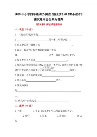 2019年小学四年级课外阅读《狼王梦》和《寄小读者》测试题两份合集附答案
