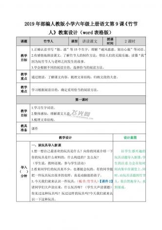 2019年部编人教版小学六年级上册语文第9课《竹节人》教案设计(word表格版)