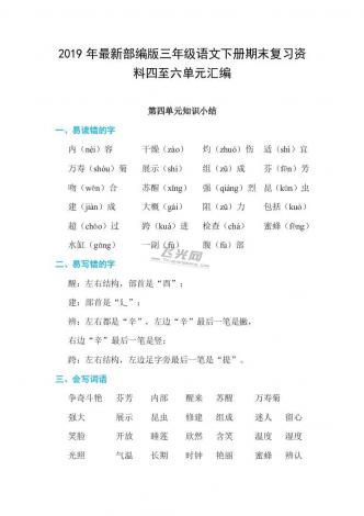2019年最新部编版三年级语文下册期末复习资料四至六单元汇编