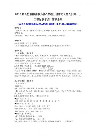 2019年人教版部编本小学六年级上册语文《穷人》第一、二课时教学设计两课合集