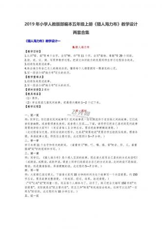2019年小学人教版部编本五年级上册《猎人海力布》教学设计两套合集