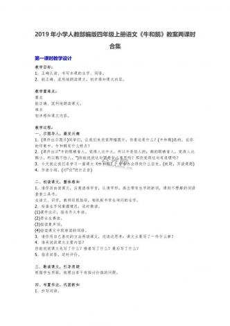 2019年小学人教部编版四年级上册语文《牛和鹅》教案两课时合集