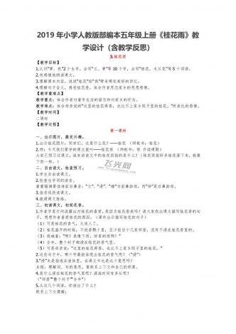 2019年小学人教版部编本五年级上册《桂花雨》教学设计(含教学反思)