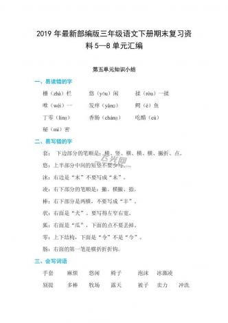 2019年最新部编版三年级语文下册期末复习资料5—8单元汇编