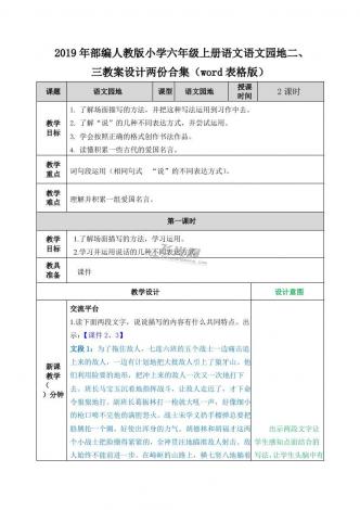 2019年部编人教版小学六年级上册语文园地二、三教案设计两份合集(word表格版)