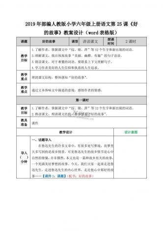 2019年部编人教版小学六年级上册语文第25课《好的故事》教案设计(word表格版)