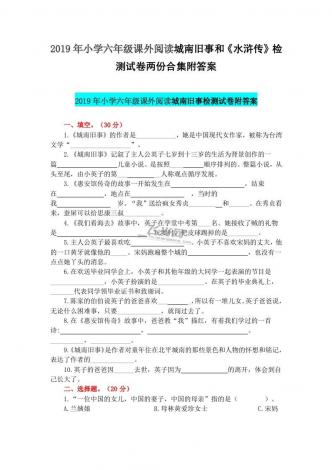 2019年小学六年级课外阅读城南旧事和《水浒传》检测试卷两份合集附答案
