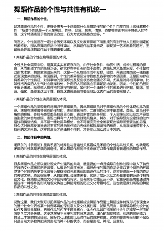 舞者表演舞蹈作品应具备的综合素质