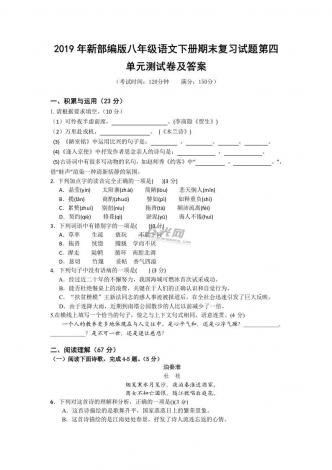 2019年新部编版八年级语文下册期末复习试题第四单元测试卷及答案