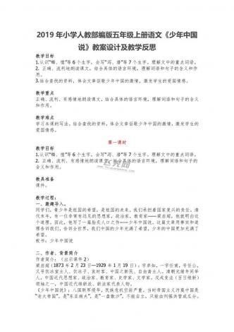2019年小学人教部编版五年级上册语文《少年中 国说》教案设计及教学反思