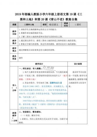 2019年部编人教版小学六年级上册语文第19课《三黑和土地》和第20课《青山不老》教案合集