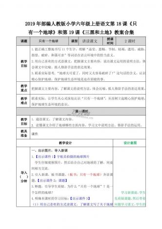 2019年部编人教版小学六年级上册语文第18课《只有一个地球》和第19课《三黑和土地》教案合集