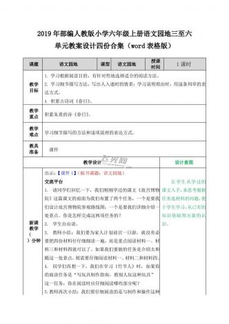 2019年部编人教版小学六年级上册语文园地三至六单元教案设计四份合集(word表格版)
