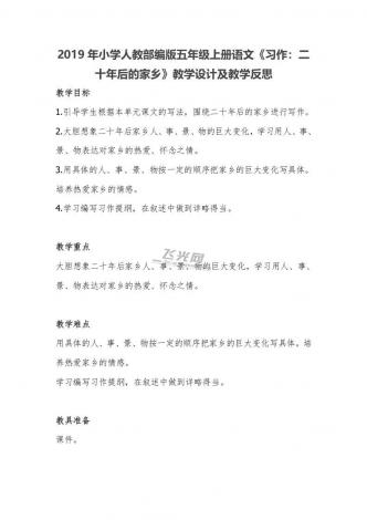 2019年小学人教部编版五年级上册语文《习作:二十年后的家乡》教学设计及教学反思