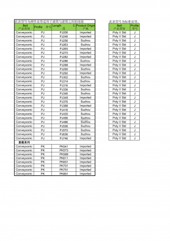 此表型号为弹性皮带适用于滚筒与滚筒之间的连接此表型号为标准皮带,适用于滚筒与电机之间的连接ConveyxonicPJPJ206ImportedPolyVStdJConveyxonicPJPJ246ImportedPolyVStdJConveyxonicPJPJ256SuzhouPolyVStdJConveyxonicPJPJ263SuzhouPolyVStdJConveyxonicPJPJ265ImportedPolyVStdJConveyxonicPJPJ270ImportedPolyVStd...