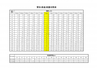 0.4m/s0.6m/s0.8m/s1.0m/s1.2m/s1.4m/s1.6m/s1.8m/s2.0m/s2.2m/s2.4m/s2.6m/s2.8m/s3.0m/s200.50.70.91.11.41.61.82.02.32.52.72.93.23.4250.71.11.41.82.12.52.83.23.53.94.24.64.95.3321.21.72.32.93.54.14.65.25.86.46.97.58.18.7401.82.73.64.55.46.37.28.19.010.01...