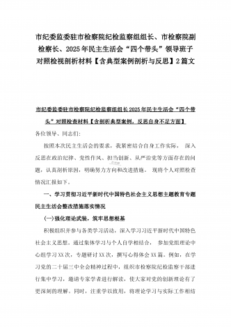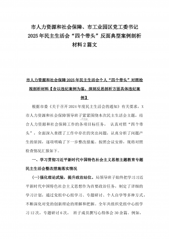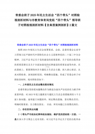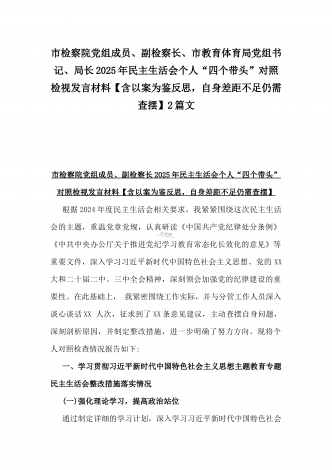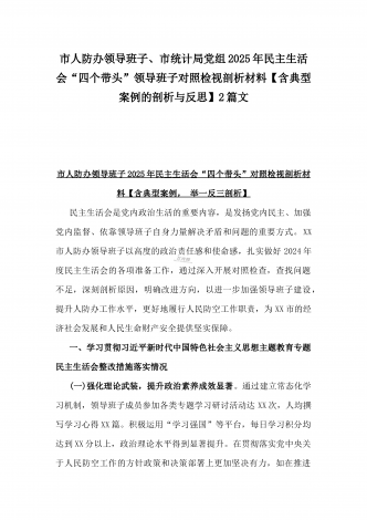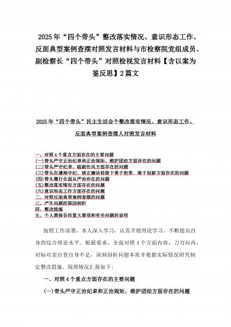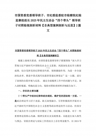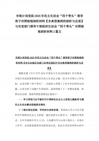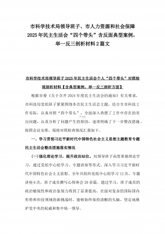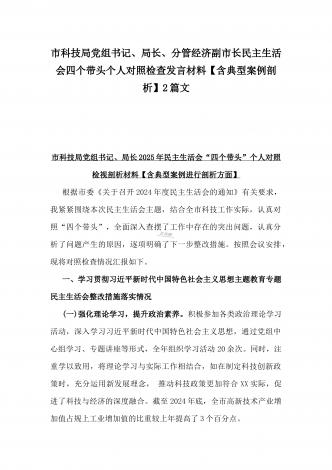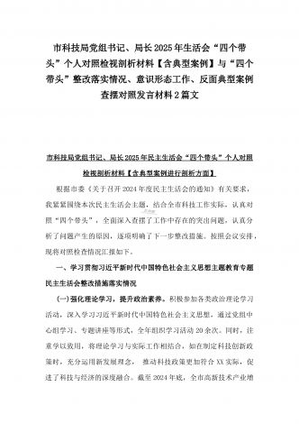 市科技局党组书记、局长2025年生活会“四个带头”个人对照检视剖析材料【含典型案例】与“四个带头”整改落实情况、意识形态工作、反面典型案例查摆对照发言材料2篇文