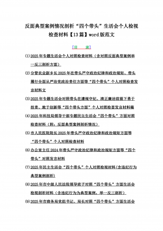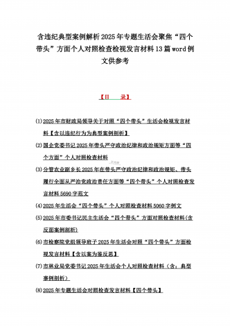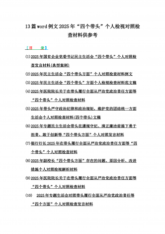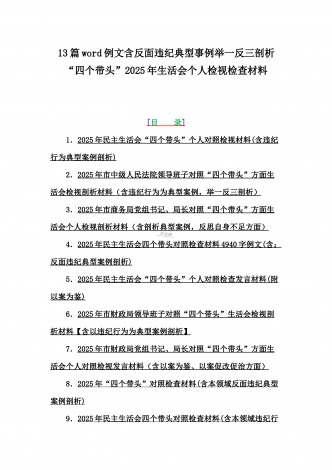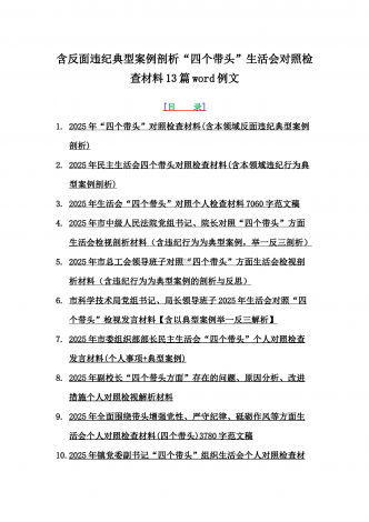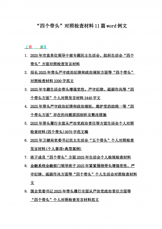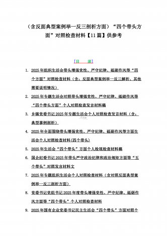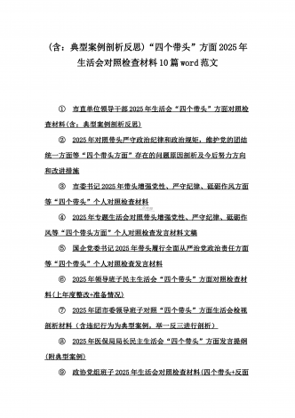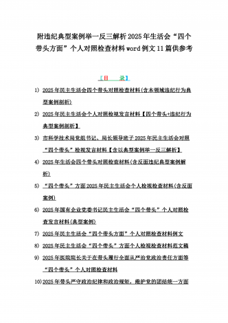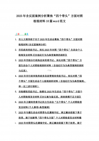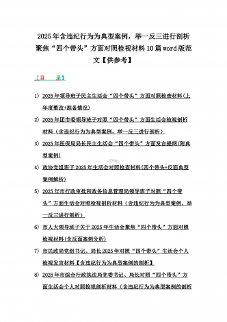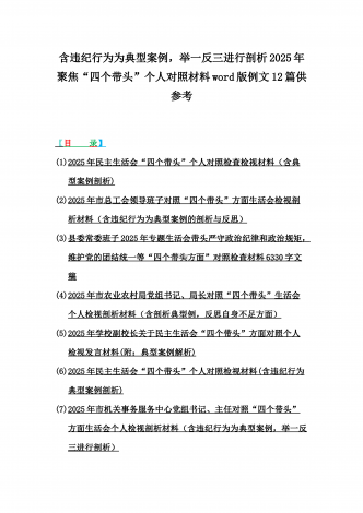 2025年含违纪行为为典型案例,举一反三进行剖析聚焦“四个带头”方面对照检视材料10篇word版范文【供参考】