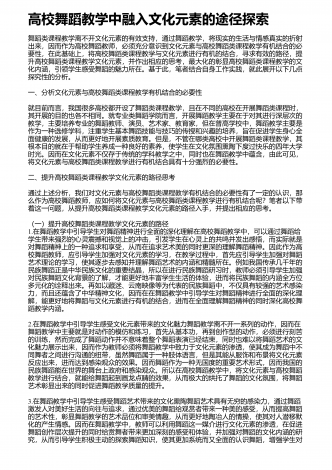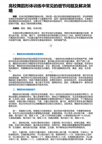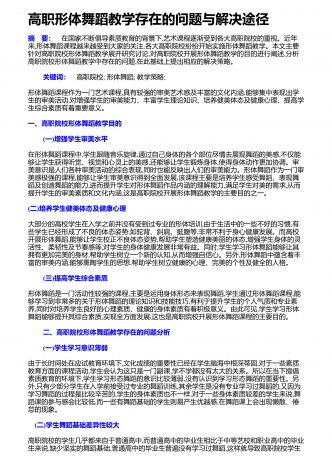 高校舞蹈教学中呼吸训练的方式和加强建议 摘 要:舞蹈备受人们的喜爱,究其原因,主要是舞蹈能够带给人美的感受和情感上的共鸣。呼吸训练对于舞蹈教学来说至关重要,有助于提升教学质量。因此,本文首先对呼吸训练在高校舞蹈教学中的重要性进行分析,并在此基础上,提出加强呼吸训练的建议,希望为相关行业提供借鉴。 关键词:高校舞蹈教学;呼吸训练;舞蹈动作;舞蹈自古以来就是人类文化的重要组成部分,为了推动这项艺术的发展,在教育部门的号召下,各高校纷纷开设了舞蹈课程,以培养专业且优秀的舞蹈人才。但就实际情...