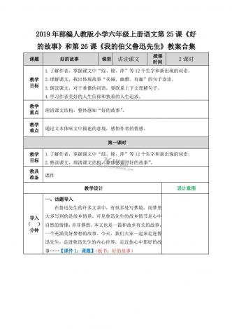 2019年部编人教版小学六年级上册语文第25课《好的故事》和第26课《我的伯父鲁迅先生》教案合集