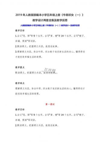 2019年人教版部编本小学五年级上册《牛郎织女(一)》教学设计两套合集及教学反思