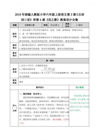 2019年部编人教版小学六年级上册语文第3课《古诗词三首》和第4课《花之歌》教案设计合集