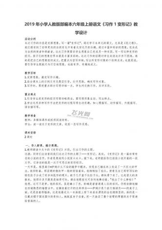 2019年小学人教版部编本六年级上册语文《习作1变形记》教学设计
