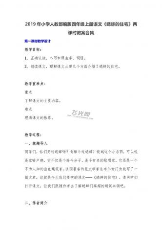2019年小学人教部编版四年级上册语文《蟋蟀的住宅》两课时教案合集