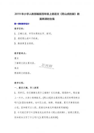 2019年小学人教部编版四年级上册语文《爬山虎的脚》教案两课时合集
