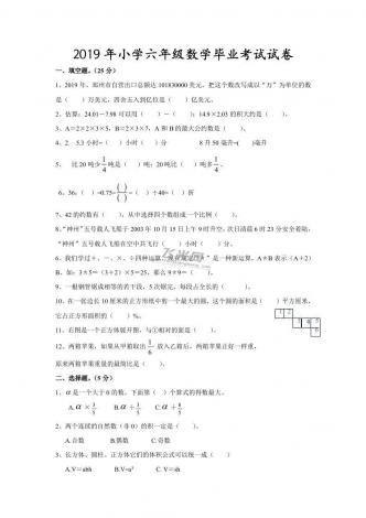 2019年小学六年级数学毕业考试试卷