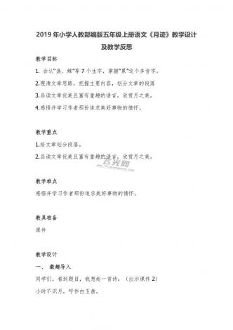 2019年小学人教部编版五年级上册语文《月迹》教学设计及教学反思