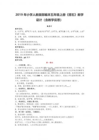 2019年小学人教版部编本五年级上册《搭石》教学设计(含教学反思)