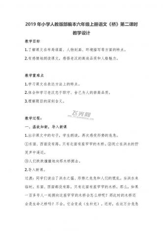 2019年小学人教版部编本六年级上册语文《桥》第二课时教学设计